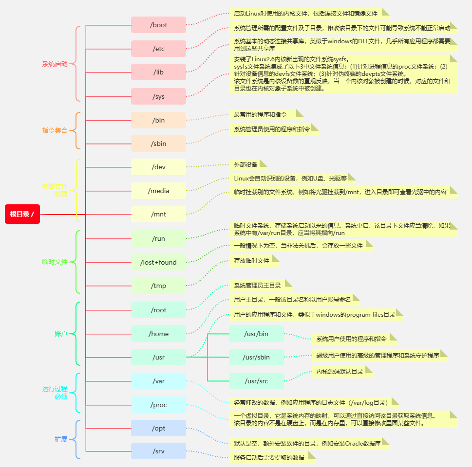 | /root/ | root 的主目录。普通用户主目录在 /home/ 下,root 主目录直接在“/”下 |