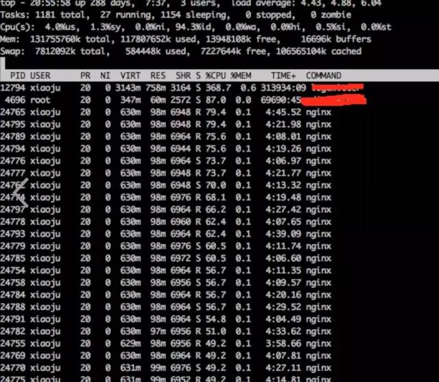 通过监控插件发现在2017.09.25 19点nginx集群请求流量出现大量的499,5xx状态码。并且发现机器cpu使用率升高,目前一直持续中。